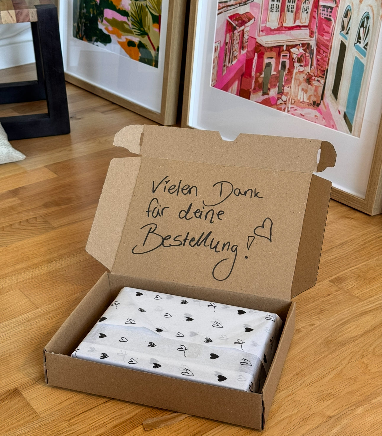 Die Freude beim Auspacken war groß und die kleine Künstlerin selbst war auch total begeistert vom Ergebnis. Ihr habt aus einer Kinderzeichnung ein unvergessliches Erinnerungsstück werden lassen.